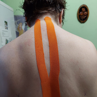 Тейпирование для поддержки шейно-грудного отдела позвоночника, снятия гипертонуса с верхней части трепецевидных мышц
